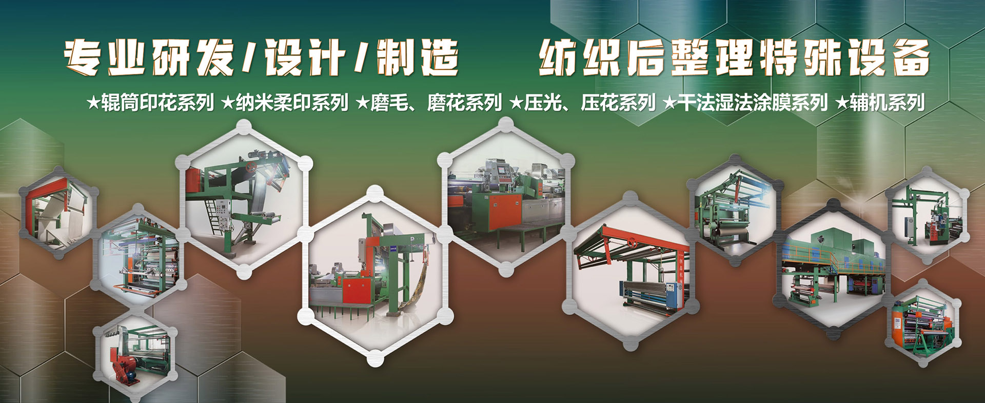 創鑫公司以”創造人機和諧之典范“為使命,專注于紡織品印染后整理設備、皮革后整理設備、無紡布后整理設備,致力于設備的技術創新和研發,獨有的核心技術已處于行業領先地位。先后自主研發出輥筒印花系列、磨毛磨花系列、壓光壓花系列、物理特整系列和輔機系列等產品;主打設備數控多色套印輥筒印花機、數控納米柔印機、精細磨毛磨花機等專利產品獲得業內高度認可,具有廣泛的市場基礎和影響力;設備實現了自動化、數控化、智能化。......